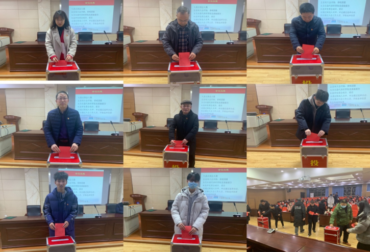 随后,按照规定流程酝酿通过候选人名单、审议通过选举办法、审议通过大会工作人员(监票人、计票人)、介绍无记名投票选举方式后党员师生开始投票。