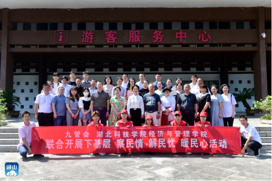 云上通山报道:(通讯员  雪雁鸣   邓晓丹)6月30日上午,九管会与湖科经管学院在九宫山游客服务中心联合开展第7期“主题党日”活动,以实际行动开展“下基层察民情解民忧暖民心”活动。湖科经管学院一行20余人,九管会机关支部15人,农村工作科、农村支部、各村、社区党支部书记、主任、老党员等20余人共计50余人参加了活动。