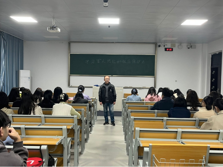 主题班会上,各班同学都积极认真地听取老师讲解《中华人民共和国军人地位和权益保障法》,学习相关法律知识。活动中同学们积极观看内容,同学们都表现出对中国军人深深的尊重敬仰和良好的态度,他们通过该法了解到军人有着崇高的地位,是全社会尊敬的职业,国家和社会应当爱护、尊重、保障军人的权利。