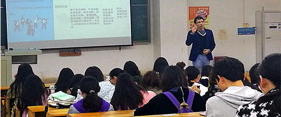 讲座中,肖珲就如何制定创业目标、如何打开商业思维、选择创业方向等同学们最关注的问题做经验分享。他从大学期间就开始创业,历经多个创业项目,有丰富的创业经历。肖珲先生详细为同学们分析了大学生创业的优势和劣势。肖珲先生认为大学生初生牛犊不怕虎,有冲劲,富有创新精神。并且可以通过智力换取资本,提高自己的能力,增长见识,做到学以致用。而且,针对大学生创业资金缺乏、经验不足等劣势一一做了分析。肖珲告诉同学们,想要成功,职业发展规划是很重要的,有了规划就有了目标。未来做什么工作其实都不重要,重要的是可以实现自己的价值。肖珲鼓励同学们只要对自己有信心,努力去做,打破传统的惯性思维。