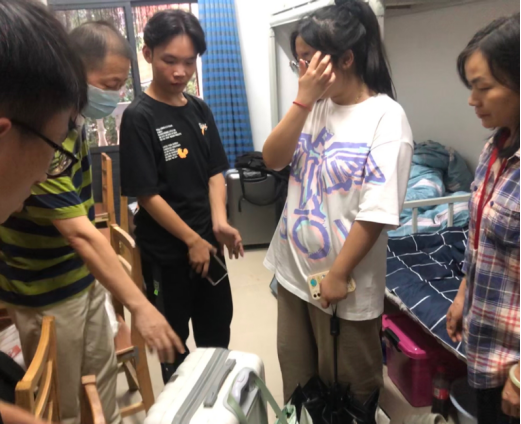 一通来自派出所的电话让所有人悬着心,21工商管理2班李冰玉焦急地向学校保卫处报警陈述自己的行李箱不慎丢失,通过志愿者在学校发布消息仍未找到,自己非常着急。接到保卫处电话后,WilliamHill威廉的刘波副书记第一时间赶到现场,与派出所干警、保卫处干部一起询问学生情况,安抚学生的情绪,并立即动员经管院学生干部和志愿者查找当班接待志愿者,同时到保卫处查看视频监控追踪行李箱去向。在志愿者负责人吴雨欣、谭澳东等同学们历经4个小时的不懈努力查找,行李箱终于在8栋被大家找到。在保卫处、宿委会、经管院学生志愿者的共同见证下,刘书记将行李箱交到李冰玉的手中,并嘱咐她及时告知家长、今后注意个人物品的保管等,李冰玉同学说:“十分感谢学院老师、同学们的帮助,让我能顺利找到行李箱,让第一次出远门的我感到了家的温暖。”