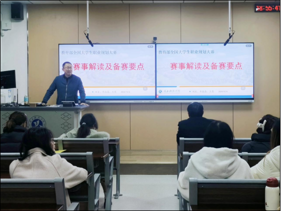 (通讯员:徐敏、李若暄;审稿:刘波)2024年12月7日晚19:00时,教二104教室成功举办了第二届全国大学生职业规划大赛赛前培训会。本次培训会聚焦大赛要点,由学校选送职规赛培训教师刘波、华晶晶、王慧三位为参加校赛总决赛的选手和指导老师做辅导。培训活动由威廉中国官方招就处主办,“一职有我”学工坊承办,校总决赛入围选手和指导老师三十余人参加培训。