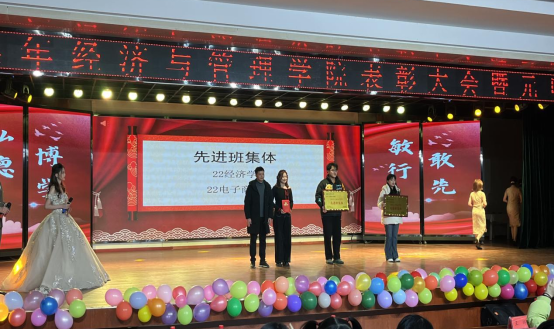 当聚光灯聚焦于舞台中心,颁奖典礼便正式拉开了帷幕。学院颁发了包括“优秀学生干部”、“先进班集体”、“三好学生标兵”以及“优秀共青团员”在内的多个奖项,以表彰和鼓励杰出的个人和团体。副院长王娜上台为获得国家奖学金和国家励志奖学金的同学们颁奖。