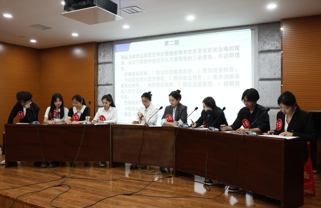 无领导小组讨论环节,选手随机分为两组,分别围绕两个题目展开讨论。讨论之后,发言人整合多方观点形成结构化方案,评委就方案提出改进方向,让选手直观感受职场真实场景中的沟通规则。