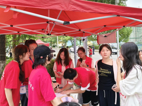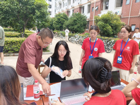 (志愿者协助新生完成线下报道)