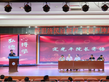 经济学副教授黄靖欣作为教师代表发言。她结合多年教学经验,从专业学习方法、学术研究态度等方面为新生提供指引。黄教授鼓励新生们保持对知识的渴求,积极参与课堂互动与学术实践,在经济学领域深耕细作,追求卓越。2004届会计学专业校友饶辉龙也来到现场,分享自己的职业经历与发展心得。他结合行业实践,为学弟学妹们剖析职业发展方向,勉励大家珍惜大学时光,夯实专业基础,为未来职业发展筑牢根基。