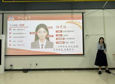 当晚19时,答辩会准时开始。答辩过程中,六名学子各展所长,用扎实的学识与亮眼的表现诠释经管学子风采。她们借助制作精良的PPT,从多维度展开阐述:学业方面,屏幕上跳动的优异成绩单、专业核心课的高分突破,印证了她们在图书馆、自习室的勤勉钻研;实践层面,社区志愿服务、乡村振兴调研、企业实习等案例,搭配现场照片与数据,展现“知行合一” 的实践能力;综合素质上,学科竞赛获奖证书、学生组织任职经历、公益活动发起案例,勾勒出全面发展的成长轨迹。每一段讲述、每一组数据,都成为学子们大学时光 “砥砺前行” 的生动注脚,让在场师生深刻感受到“优秀“”背后的坚持与付出。