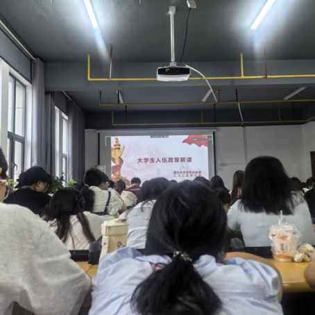 随后王蓓老师开展2025年大学生入伍政策解读。她从入伍的基本条件,如年龄、身体状况等方面入手,让同学们对入伍资格有了初步认识。接着,详细介绍了入伍后的各项待遇,像学费补偿、国家助学贷款代偿以及在部队中的发展前景等,让同学们了解到投身国防不仅是一种责任,也能为个人成长带来诸多机遇。王蓓老师的讲解,帮助了新生消除后顾之忧,同时明晰入伍对个人成长的多样化助力,为他们规划未来提供更全面的参考。
