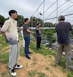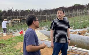(二)基于5月11日调研的问题,刘波老师通过协调相关资源,于5月13日下午,在咸安区人社局、香城众创孵化器相关负责人的陪同下,带领“食物森林”创业项目团队成员张思蔚、喻凯深入横沟镇高新沃佳农民专业合作社,实地调研相项目和开展校企对接。