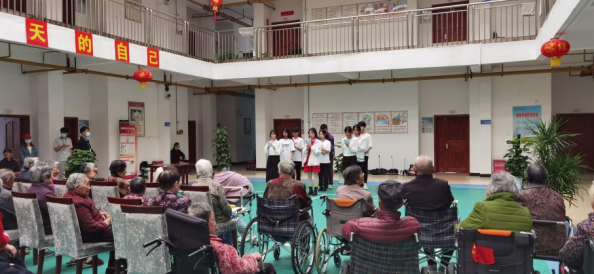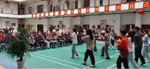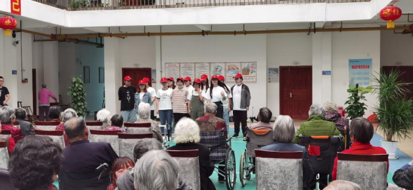 全体大学生志愿者通过表演歌舞、诗词朗诵、同做游戏、促膝聊天等形式,给全体老人送去了温暖、送去了关爱。老人们对志愿者们的表演给予了热烈的回应,尤其是游戏阶段,老人们踊跃参与,积极表现,如孩子般快乐开心。志愿者们还为老人们送去了慰问品,志愿活动结束时,老人们拉着志愿者们的手久久不放,志愿者们同样心怀牵挂依依不舍。