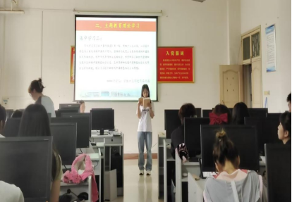 本次主题党日,主要是集中学习习近平总书记关于中国特色社会主义思想主题教育的重要讲话精神。学生党员李晓春、石胡鑫、刘娜娜和弓怡同志依次围绕中国共产党第二十次全国代表大会上的报告、《习近平著作通读》、浙江“千万工程”和党员干部下基层察民情解民忧暖民心实践活动交流学习体会。