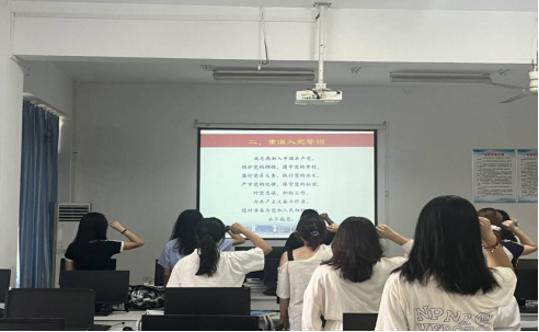 全体党员首先重温入党誓词,让党员再次深刻回忆起入党时的初心,牢记为中国人民谋幸福、为中华民族谋复兴的使命,提醒党员始终保持对党的忠诚,坚定共产主义信仰,无论何时何地都不忘记自己为什么出发,从而在思想上、行动上与党保持高度一致。