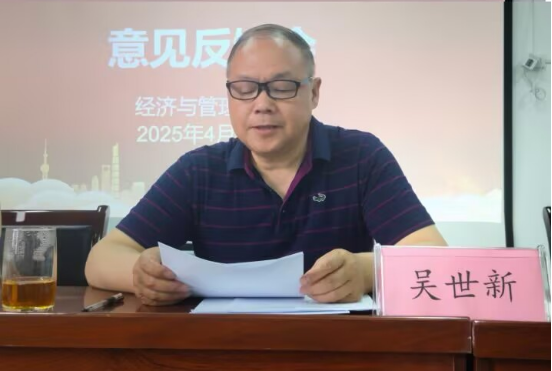 组长吴世新讲话,他强调,学院要高度重视严肃对待,吴世新对学院党委提出了三点要求:一是切实提高抓好巡察整改的政治站位,希望经管学院党委切实扛起全面从严治党主体责任,从严从实抓好整改;二是要对照巡察反馈的具体问题,主动制定整改方案,切实强化整改责任的政治担当,以坚定的决心、有力的举措,坚决做到整改全面、彻底;三是切实扛起推动高质量发展的政治责任,希望经管学院党委以巡察整改为契机,将整改作为管党治党、促进发展的关键举措,全面推进巡察整改工作落实。