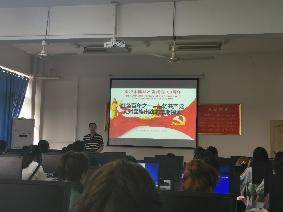 (通讯员:邱意美 王朗)20215月7日下午1430,经管院在理工楼一栋203开展了《红色百年之一——忆共产党人对民族出路的早期探索》主题教育专题党史学习讲座。本次讲座由经管院党总支副书记刘波担任主讲人,经管院2021上半年入党积极分子60余人参加本次讲座。