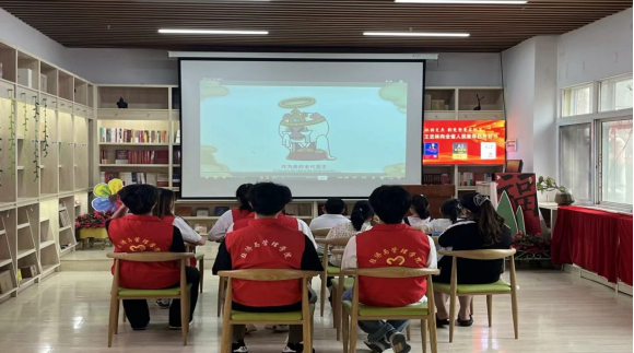 共读活动结束后,同学们与孩子们移步书店影音区,共同观看红色动画电影。观影结束后,又组织了“观后小课堂”,通过问答形式回顾影片细节。孩子们踊跃发言,纯朴的答案中流露出知识的渴望与对红色精神的向往。