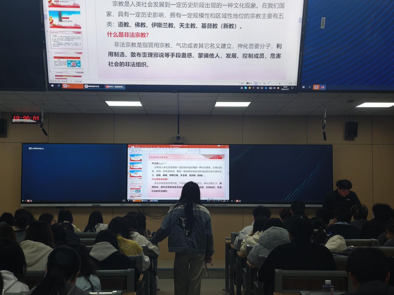 班会过程中,同学们通过互动问答、观点交流等形式,踊跃参与到主题讨论中,进一步深化对抵御非法宗教渗透重要性的认识。同学们纷纷表示,将认真学习和遵守宗教政策法规,坚定科学信仰,自觉抵制非法宗教渗透,主动维护校园的纯净与安全,以实际行动践行新时代大学生的责任与担当。