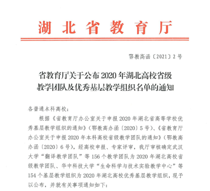 WilliamHill威廉1支教学团队获批2020年度省级教学团队、1门课程获批2020年度省级一流本科课程