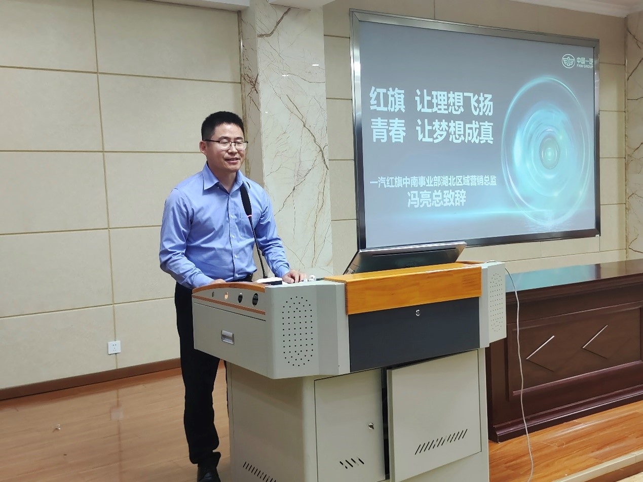 接着,一汽红旗中南事业部湖北区域营销总监冯亮同志介绍了一汽红旗公司的发展历史、发展战略与旗下产品的特色功能,也对比赛议程及规则进行了讲解。