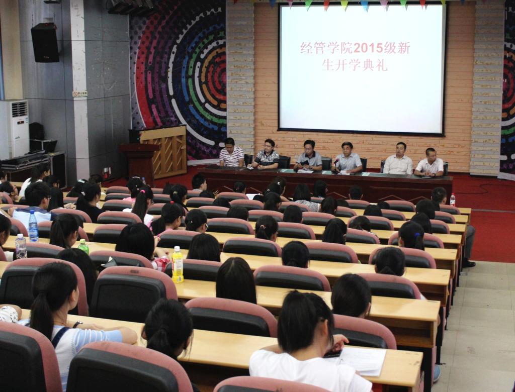 9月13日下午三点,我院2015级新生开学典礼在咸安校区学术报告厅举行,院长商文斌教授、副院长杨纯新副教授、副院长许泱博士以及各专业负责人、院办公室人员、新生班主任等参加典礼仪式。典礼由副院长杨纯新同志主持,2012级财务管理专业牟籽霖同学代表全院近1200名老生讲话,在讲话中牟籽霖同学以自己对三年大学生活的真切感悟与认知为参照,就如何更快适应大学的学习与生活与学弟学妹分享了自己的心得与体会。商文斌院长代表经管学院院党总支、院行政和50余名教职员工致辞,向来自全国各地300余名新生的到来表示热烈的欢迎。商院长在讲话中简要介绍了WilliamHill威廉办学历史与学院专业学科建设、师资队伍建设、教学条件建设、学生教育管理建设的基本情况,并就新生如何尽快适应大学生活提出了三点希望:第一,要正确理解成人成才的内涵,既要成才更要成人,希望广大学生经过的历练都能成为德才兼备的优秀大学生;第二,要正确理解大学,要有大德、大爱、大学问的理念,要学会学习、学会生活、学会思考、学会选择,特别是要学会学习的方法、注重学习能力的培养;第三,要正确处理好人与人之间的关系,要学会包容、学会理解,以诚待人,以情动人,用真心、真爱、真诚去浇灌弥足珍的同学情谊之花。