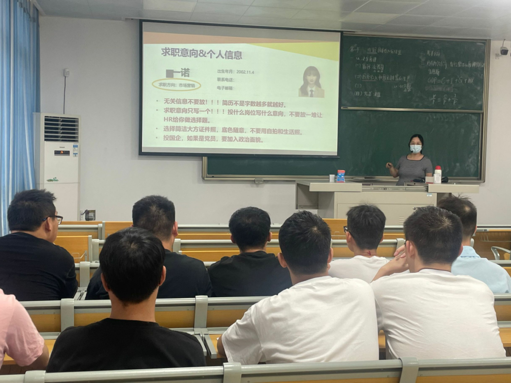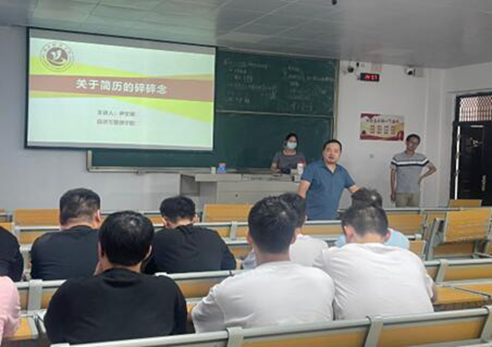 在工商管理专业,专业负责人陈鹏老师介绍每位辅导老师的个人擅长以及主讲专题,随后尹文珺博士从简历风格选取、简历内容中的基本个人信息、求职意向、教育背景、实习经验、在校经验等各方面深入浅出的讲解,帮助学生全面理解简历的制作,掌握简历制作的技巧。