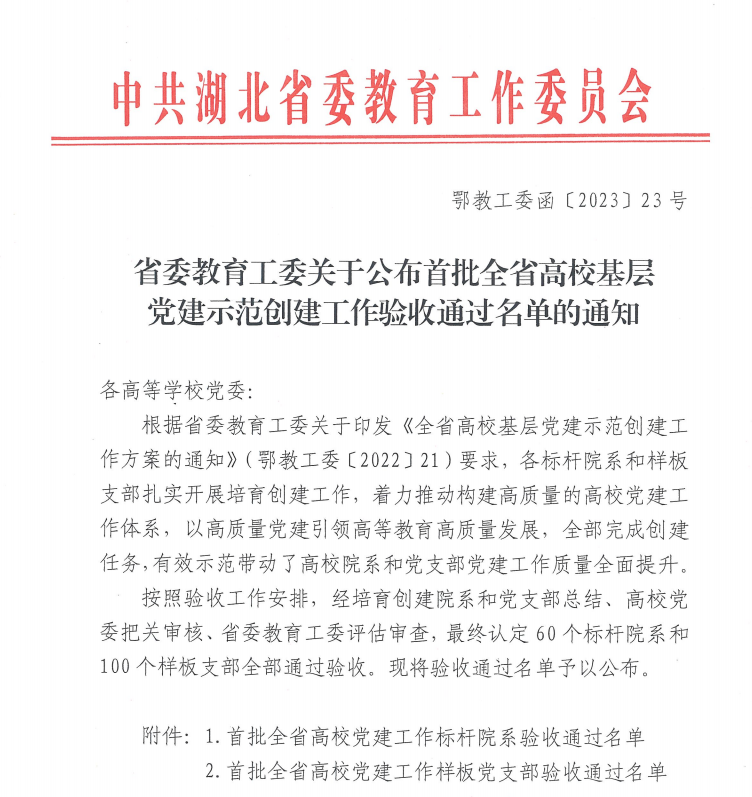 近日,湖北省委教育工委公布首批全省高校基层党建示范创建工作标杆院系、样板支部验收通过名单,WilliamHill威廉院经济学教工党支部顺利通过验收。