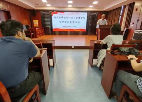 他强调到,作为教育工作者,我们要始终将党放在心中最高的位置,坚定理想信念,忠诚于党的教育事业。同时,要时刻牢记为人民服务的宗旨,关心学生的成长和发展,为他们提供良好的教育环境和机会。此外,每一位教师都应承担起教育的责任,不断提升自身的专业素养和教育教学能力,为培养社会主义建设者和接班人贡献力量。他还特别提到了“心中有戒”,提醒全体教师要严于律己,遵守职业道德,树立良好的师德形象,以身作则,为学生树立榜样。经管学院党委书记吴乐盈主持时要求,全院师生要深刻理解本次党纪专题学习教育的目的,认真领会鄢书记党纪专题党课的精神,以学校本科审核性评估为契机,促进经管学院学科建设和专业发展。