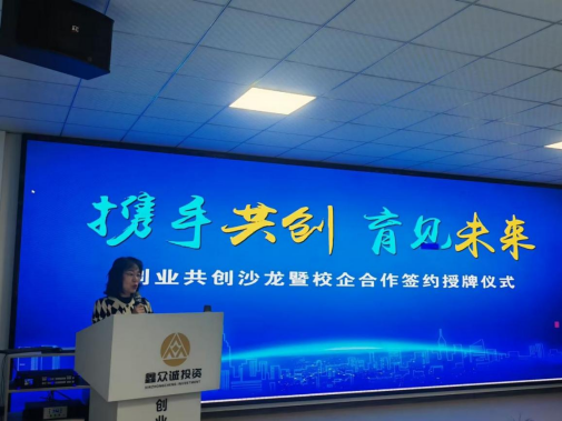咸安区人力资源与社会保障局党组成员、副局长张永红就此次政校企合作签约授牌仪式致辞。吴乐盈代表学校发表热情洋溢的演讲,经管学院愿成为企业与学生之间沟通的桥梁,让学生能有一个大舞台与企业代表、创投机构进行交流合作,推动双方共同为学生提供更多就业与创业机会。