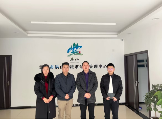 在洪山区城市运行管理中心,中心副主任吴琳(兼任经管学院校外导师)、洪山区大数据中心刘烨等进行了深入交流。吴主任对经管学院一行的到来表示欢迎,并再次感谢了蔡青青博士在洪山区经科局挂职期间大数据中心在智慧洪山、数字街道、公共数据资源交易等项目取得的重大成就。双方就如何基于这些研发成果,进一步推动经管学院与企业、政府部门之间开展深度合作进行了深入交流。特别是在指导学生团队参加大型赛事、联合培养人才等方面,双方达成了诸多共识,进一步具象化双方合作形式。
