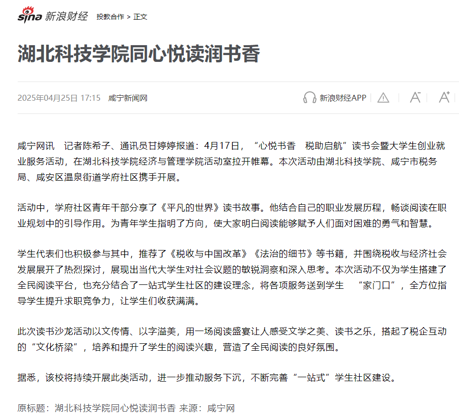 学生代表们也积极参与其中,推荐了《税收与中国改革》《法治的细节》等书籍,并围绕税收与经济社会发展展开了热烈探讨,展现出当代大学生对社会议题的敏锐洞察和深入思考。本次活动不仅为学生搭建了全民阅读平台,也充分结合了一站式学生社区的建设理念,将各项服务送到学生 “家门口”,全方位指导学生提升求职竞争力,让学生们收获满满。