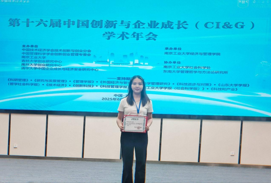 (通讯员:张子怡;审稿:刘波)2025年6月21日至22日,我院工商管理专业2022级本科生张子怡应邀参加在南京工业大学举行的第十六届中国创新与企业成长(CI&G)学术年会。