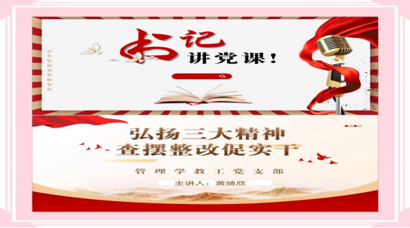 (通讯员:黄靖欣;审稿:王娜、吴乐盈)管理学教工党支部书记以“弘扬三大精神 查摆整改促实干”为主题,为支部全体党员教师上了一堂专题党课,引领党员干部筑牢思想根基,强化责任担当。